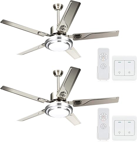 Amazon Com 2 Pack Stainless Steel Ceiling Fan With Lights Remote And Wall Control Modern 48inch 5 Blades Kitchen Dining from images-na.ssl-images-amazon.com Shop wayfair for all the best ceiling fans. Much easier to use than the fan with a cord that you have to pull 50. They are built with materials like aluminum and stainless steel with waterproof motor housings and. Buy ceiling silver ceiling fans and get the best deals at the lowest prices on ebay! Brushed nickel finish ceiling fan with 4 blades. It is made of stainless steel and has galvanized coatings. The fan doesn't come with a remote, but it is compatible with hunter's remotes and wall controls sold. Stainless steel ceiling fans remote are suitable for all types of uses.